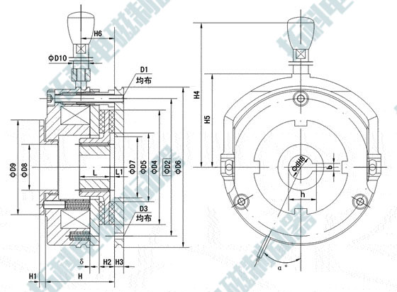| 型號 | d | D1 | D2 | D3 | D4 | D5 | D6 | D7 | D8 | D9 | D10 | b | h | L | L1 | H | H1 | H2 | H3 | H4 | H5 | H6 | δ | α |