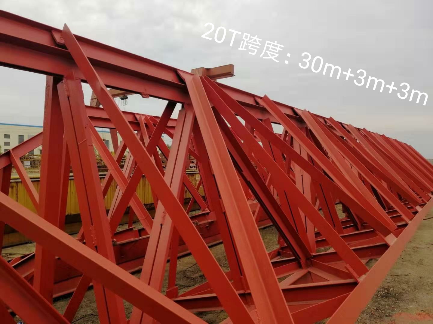 20頓.跨度:30米,各懸3米花架龍門吊
