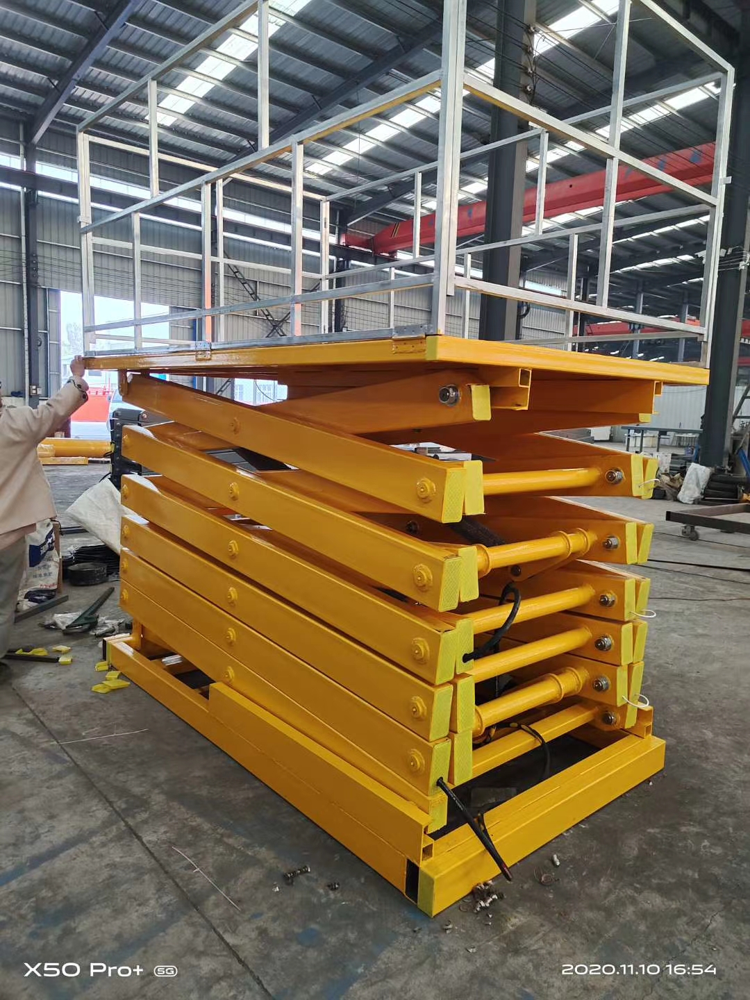 1、設(shè)有升降臺(tái)超載 液壓安全保護(hù)系統(tǒng)的 液壓剪叉式升降臺(tái),升降臺(tái)主結(jié)構(gòu)采用高強(qiáng)度錳鋼矩形管制作,強(qiáng)度高,堅(jiān)固耐用