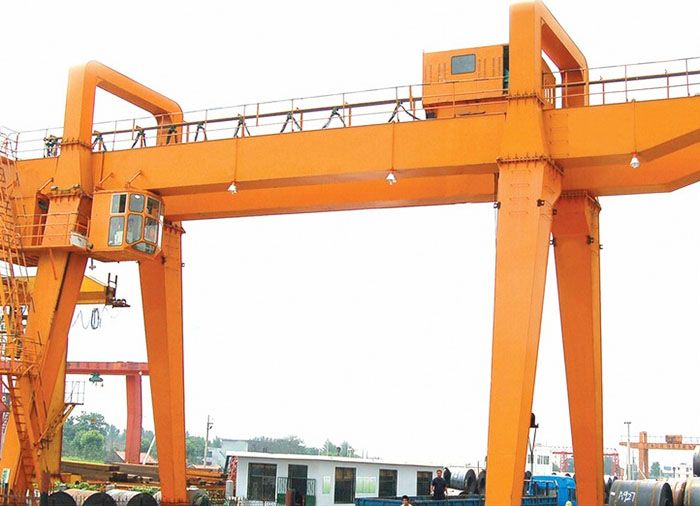 其金屬結構類似門形框架,承載主梁下設有雙腳支撐,可直接在地面軌道上行走,主梁兩端可設有外伸式懸臂梁。