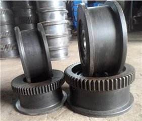 車輪是用來支承起重機和載荷,并在軌道上使起重機往復行駛運行的裝置。車輪主要損傷的形式是磨損、硬化層壓碎和點蝕。車輪的材料一般采用ZG430-640鑄鋼。為了提高車輪表面的耐磨強度和壽命,踏面應進行表面熱處理,要求表面硬度為HB300-350,淬火深度不少于20mm.