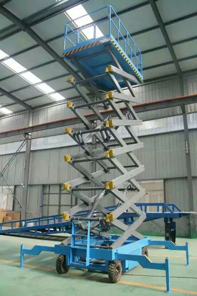 升降平臺是一種多功能起重裝卸機械設備。升降平臺升降系統,是靠液壓驅動。它使高空作業效率更高,安全更保障。可分為固定式和移動式。我公司的升降平臺品種多,樣式多,具有重量輕、自行走、電啟動、自支腿、操作簡單、作業面大,能跨越障礙進行高空作業等360度自由旋轉優點。